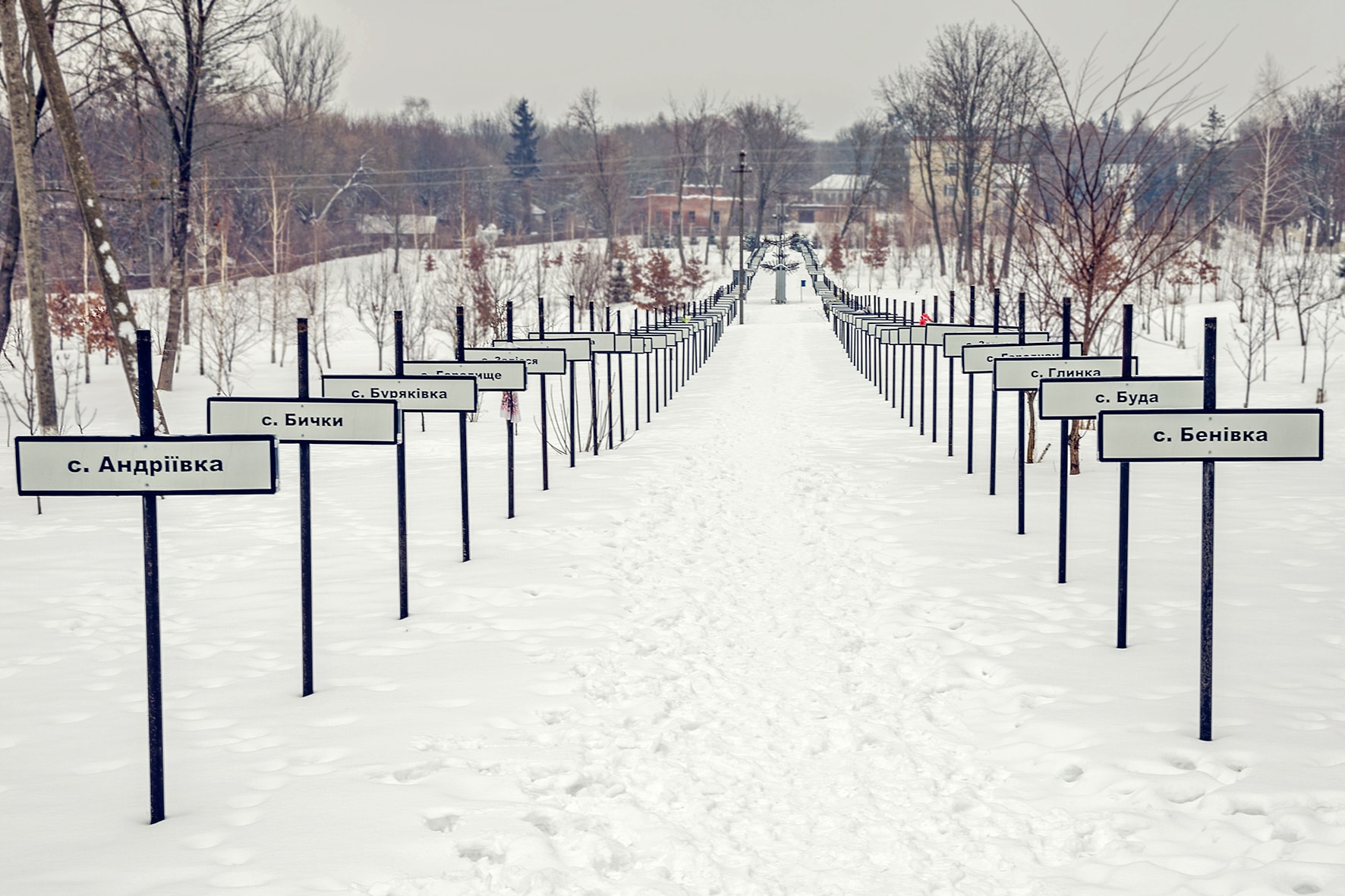 W Czarnobylu, w pierwszej kolejności, zatrzymujemy się obok pomnika i muzeum, w którym kiedyś działało kino. Wielki Anioł od razu ściąga wzrok. Anioł zagłady a może czuwa nad wyludnionymi wsiami i miasteczkami? Może nad ludźmi, których dotknęła tragedia? Dopiero później dostrzegam aleję z tablicami upamiętniającą wszystkie wyludnione miasteczka i wsie, w strefie.
