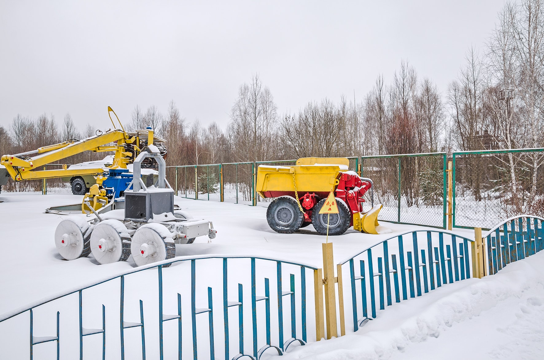 Ostatni przystanek jest przy parku zautomatyzowanych maszyn, które wykorzystywane były do oczyszczania wokół reaktora, w centrum napromieniowania. Obwody zdalnie sterownych urządzeń nie wytrzymywały poziomu napromieniowania. Nasz przewodnik wyciągnął dozymetr i trzymał chwilę rękę wyciągniętą w ich stronę. Promieniowanie rosło w zastraszającym tempie.