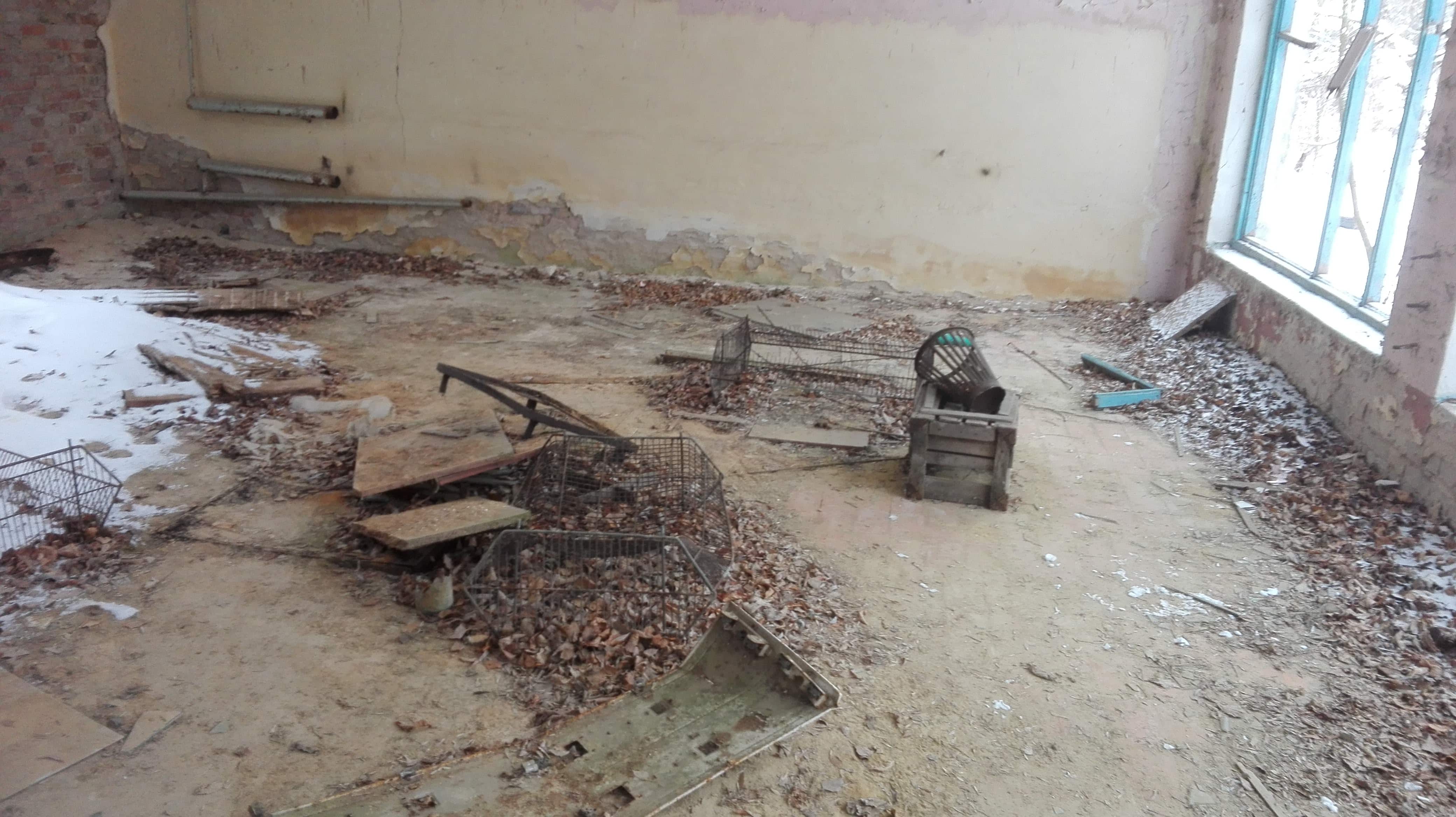 Wracając wchodzimy do sklepu. W suficie dziury i gołe ściany. Na podłodze bałagan. Walają się jakieś zardzewiałe sprzęty. Wszystko, co miało jakąś wartość, dawno już wynieśli szabrownicy.