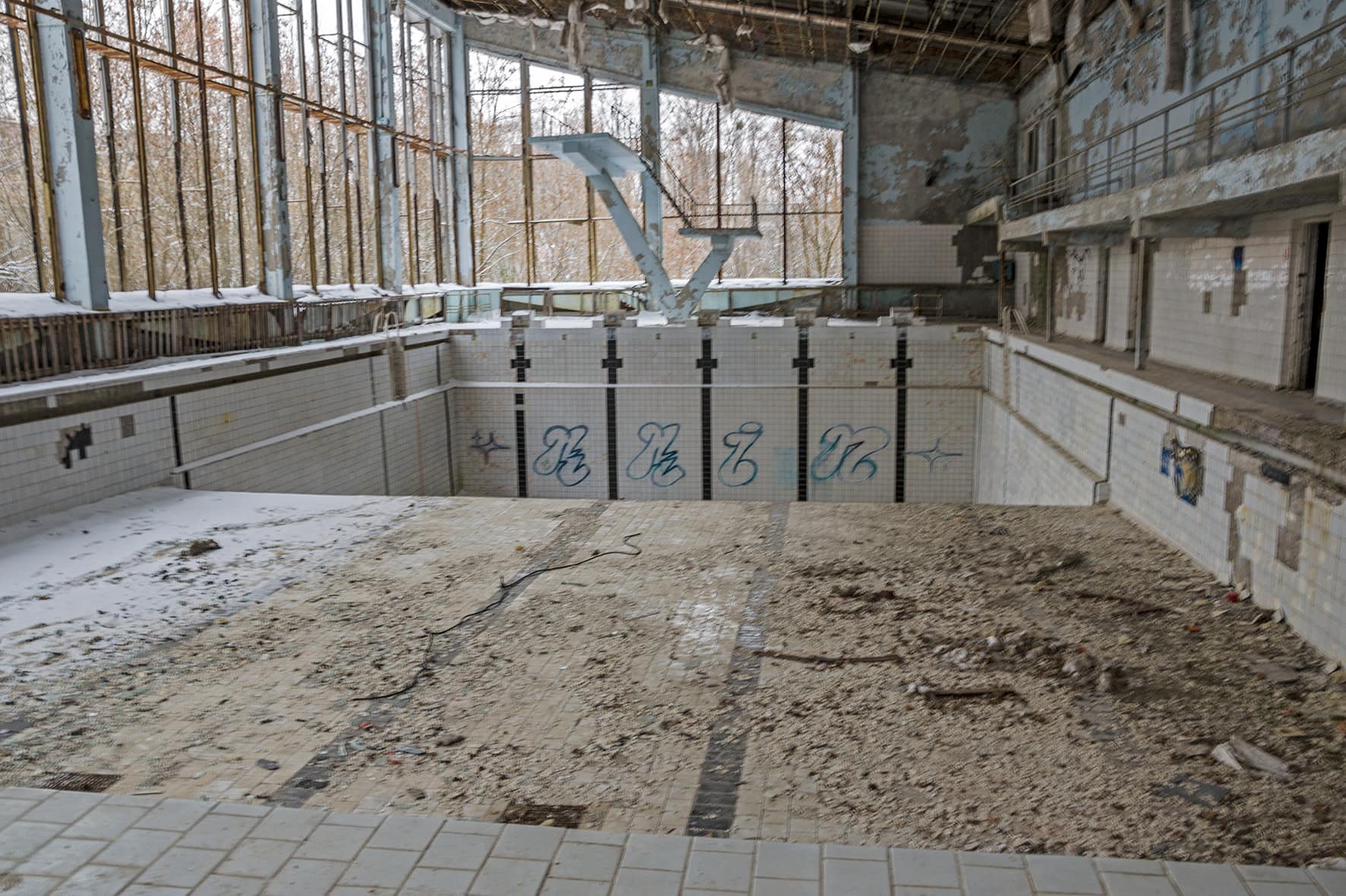 Ostatni przystanek przy basenie Azuro. Wszyscy mieszkańcy mieli do niego dostęp. Jeszcze 10 lat po katastrofie korzystali z niego likwidatorzy. Dzisiaj hula tutaj tylko wiatr.