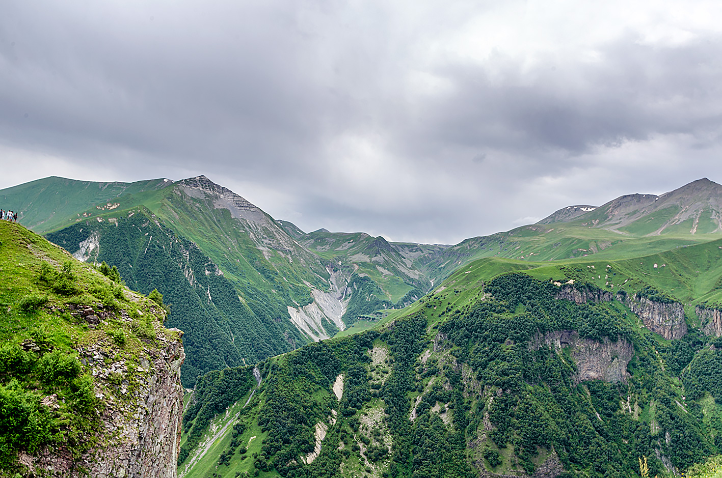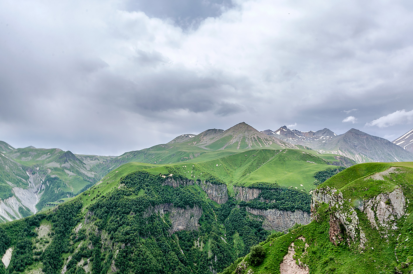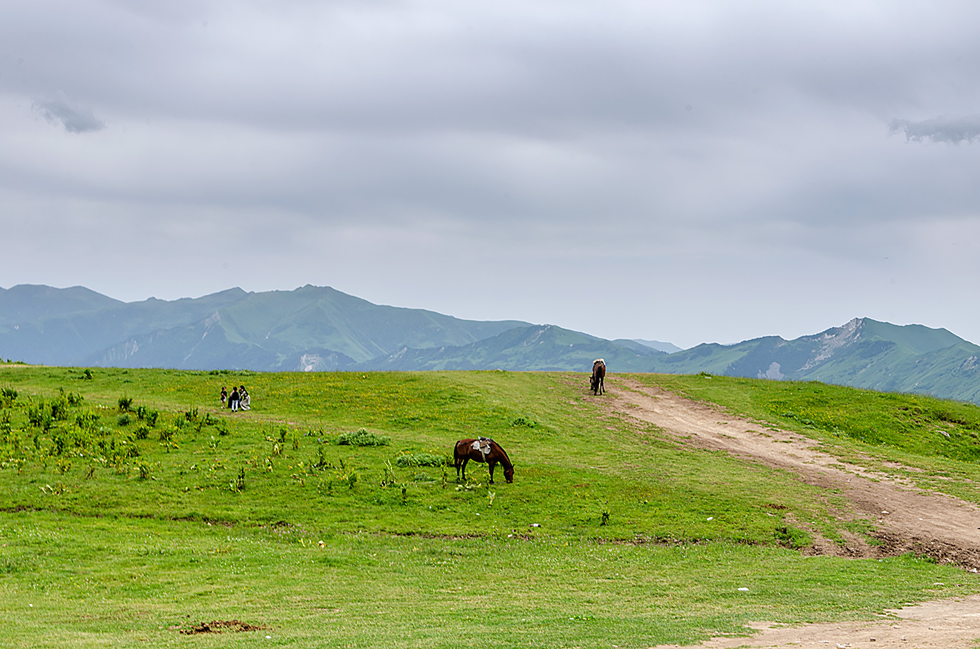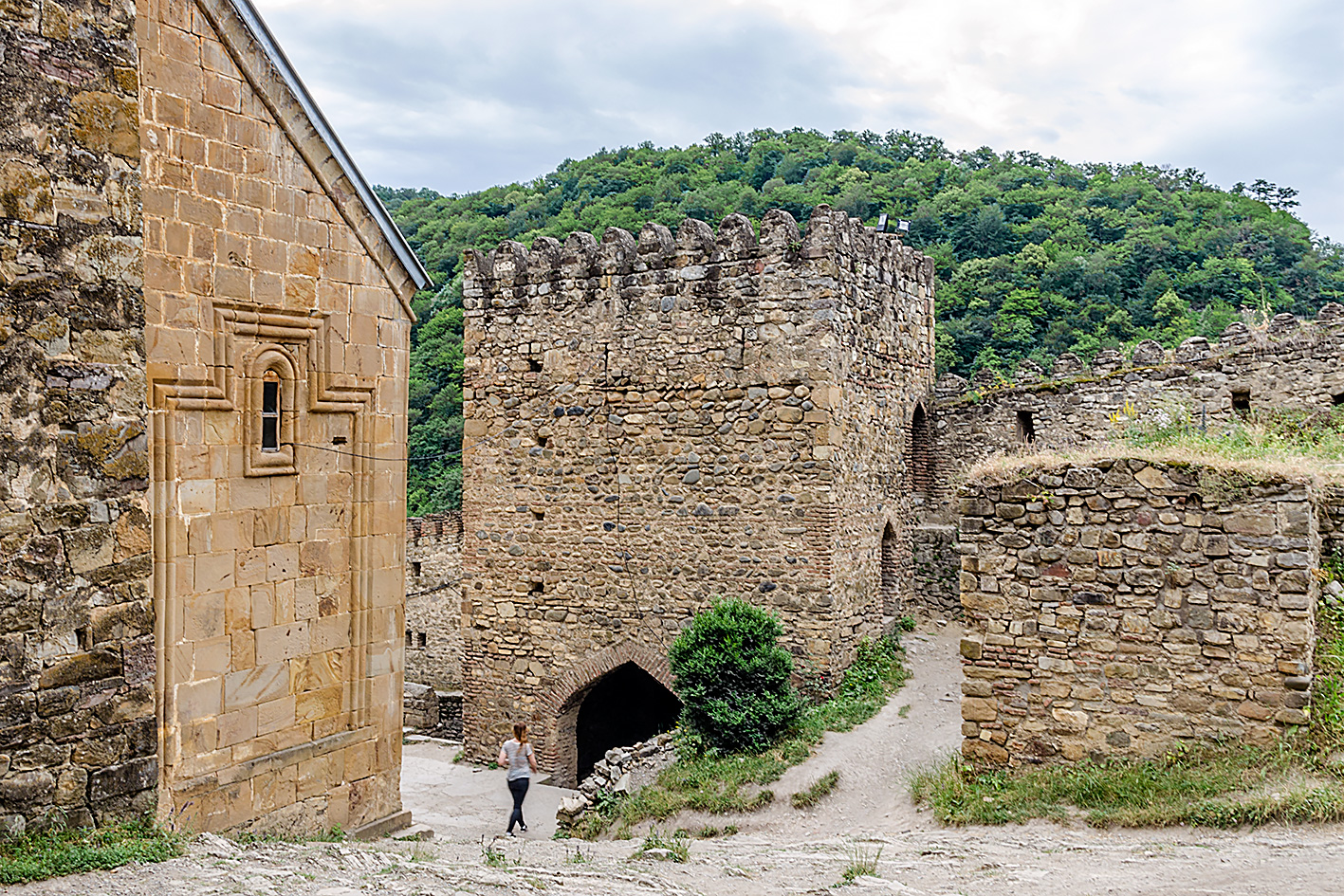 Cerkiew Cminda Sameba pod wezwaniem Trójcy Świętej, znajduje się na wysokości 2170 m n.p.m. Zbudowany wśród gór Kaukazu w XIV w. Pod klasztorem widoki zapierają dech w piersiach. Widać Kazbegi położone w dolinie. Przejaśniło się na chwilę.