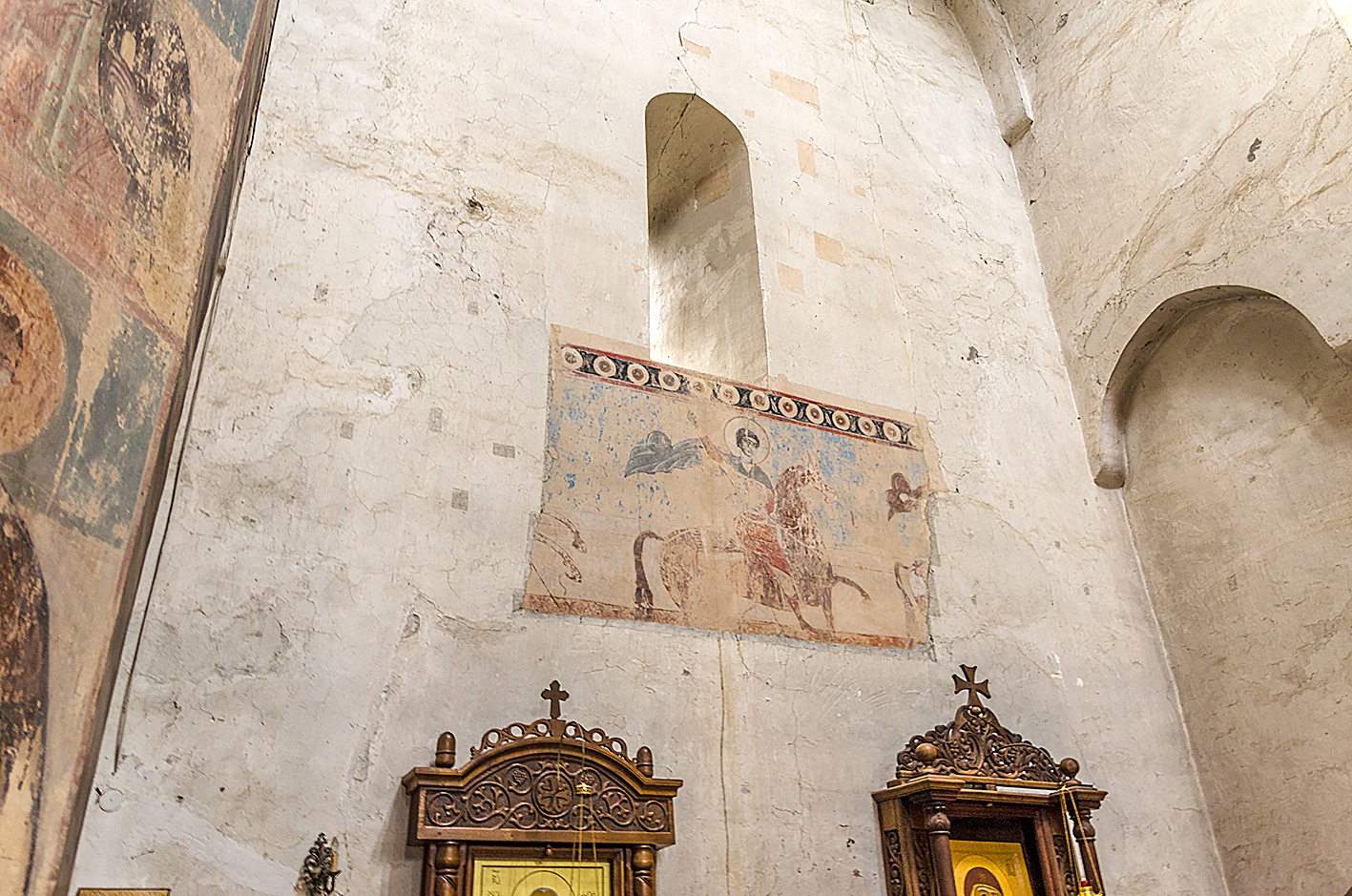 Pierwsza nasza myśl to była taka, żeby iść do klasztoru na pieszo. No niestety, po tej podróży chęci nam zabrakło. Nasi współtowarzysze zostają tutaj na noc, więc nikt nie chce z nami wynająć samochodu. No nic, jak już jechać i płacić, to nie może być innego samochodu jak łada NIVA 🙂 Droga w jedną stronę trwa ok. 30 min. Nie pamiętam, ile dostaliśmy czasu na górze, ale wystarczająco. Obeszliśmy wszystko, po czym pan zwiózł nas na dół. Co to była za jazda 🙂